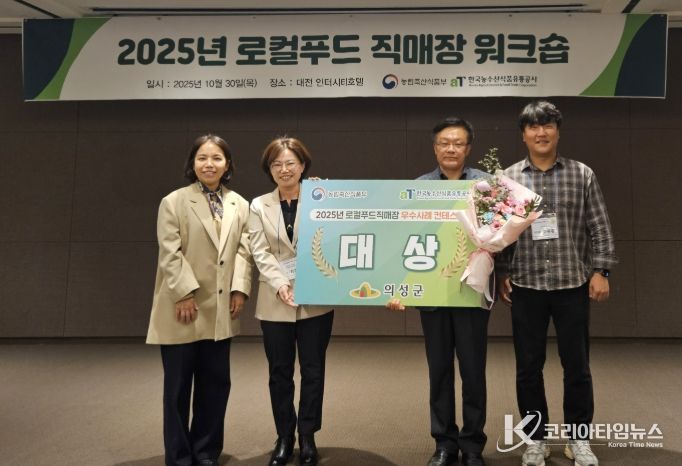 코리아타임뉴스 노승선 기자 | 의성군은 지난 10월 30일 ‘의성로컬푸드직매장’이 농림축산식품부와 한국농수산식품유통공사(aT)가 공동 주관한 ‘2025년 로컬푸드직매장 우수사례 공모전’에서 대상을 수상했다고 밝혔다.