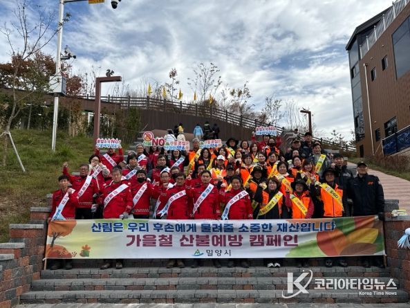 코리아타임뉴스 김태훈 기자 | 경남 밀양시는 가을철 산불조심기간을 맞아 시민의 산불예방 의식을 높이기 위해 12일 용두산 생태공원 일대에서 산불예방 홍보 캠페인을 전개했다고 밝혔다.