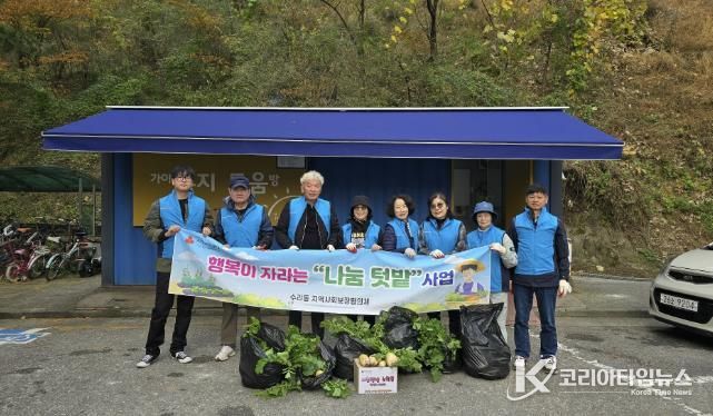 ‘행복이 자라는 나눔 텃밭’은 산본가야2차 아파트 단지 내 유휴 부지(약 140㎡)를 주택관리공단으로부터 제공받아, 협의체 위원들이 직접 다양한 농작물을 재배하고 수확하여 어려운 이웃과 나누는 수리동만의 특화사업이다. 올해는 8월에 가을무 모종을 심어 정성껏 가꾸어왔으며 풍성한 수확의 기쁨을 함께 나누게 됐다.