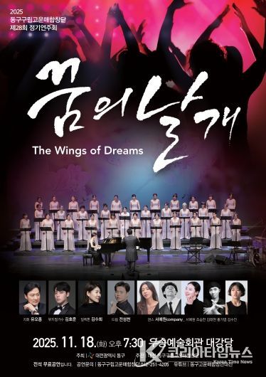 코리아타임뉴스 대전취재본부 | 대전 동구는 오는 18일 오후 7시 30분 우송예술회관 대강당에서 제28회 고운매합창단 정기연주회 ‘꿈의 날개(The Wings of Dreams)’를 개최한다고 밝혔다.