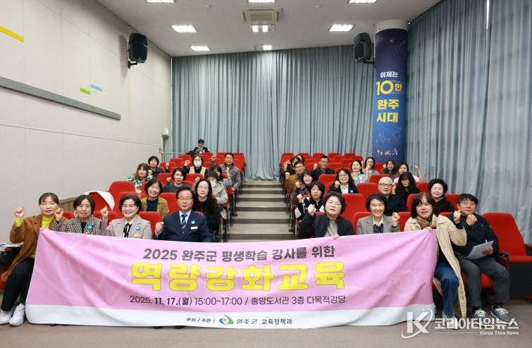 코리아타임뉴스 전북취재본부 | 완주군이 17일 중앙도서관 다목적강당에서 평생교육 강사 80여 명을 대상으로 ‘평생교육 강사 역량강화 교육’을 실시했다.