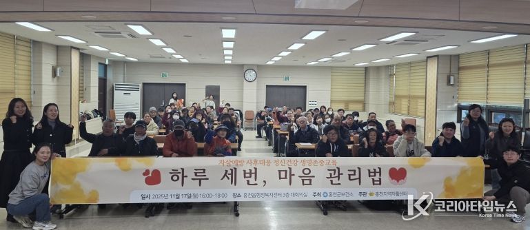 코리아타임뉴스 의료보건팀 | 홍천군 정신건강복지센터는 11월 17일 홍천읍행정복지센터에서 홍천군지역자활센터 이용자와 종사자를 대상으로 ‘하루 세 번 마음 관리법’이라는 주제로 정신건강교육을 실시했다.