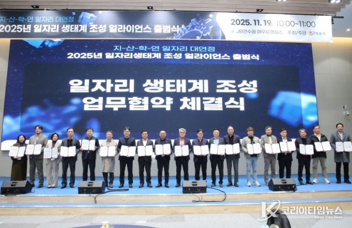 시는 19일 JB연수원 아우름 캠퍼스에서 ‘일자리창출 생태계 조성 얼라이언스’ 출범식을 갖고, 바이오산업 육성을 통한 지역 고용 생태계의 새로운 비전을 선포했다.