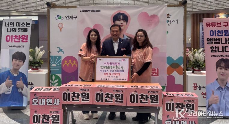 코리아타임뉴스 이아름 기자 | 연제구는 11월 17일 가수 이찬원 팬클럽(CWBB부산찬스방)으로부터 지역 내 어려운 이웃을 돕기 위한 성금 600만 원을 전달받았다.