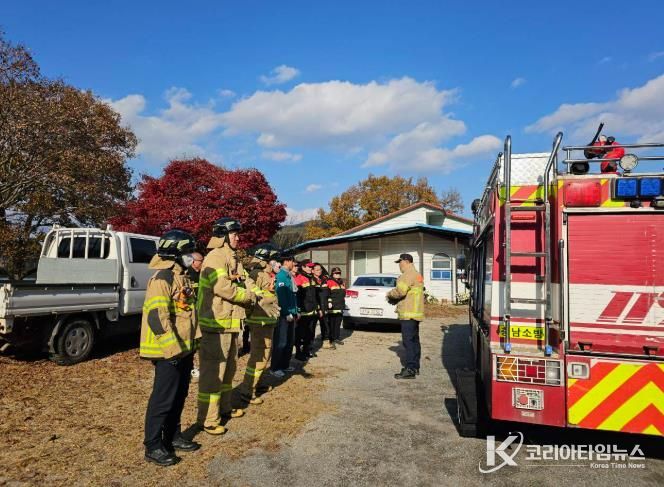코리아타임뉴스 충남취재본부 | 부여군 충화면은 지난 18일 충화면 오덕리 새움교육원에서 가을철 산불 발생 위험에 대비해 부여소방서 임천119안전센터와 함께 가을철 산불진화 합동훈련을 실시했다.