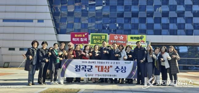 코리아타임뉴스 경북취재본부 | 칠곡군은 지난 19일 영천시 실내체육관에서 열린 ‘2025년 경상북도 자원봉사 우수 시군 평가’에서 군부 최고상인 대상을 수상했다.