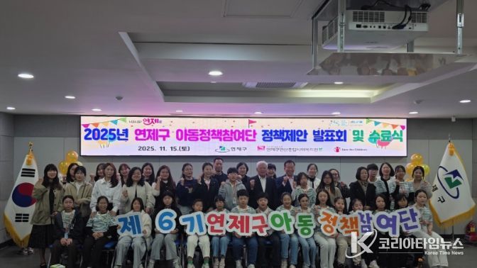 코리아타임뉴스 이아름 기자 | 부산시 연제구는 11월 15일 한 해 동안 추진된 아동정책참여단의 활동을 마무리하는 ‘2025년 연제구 아동정책참여단 정책제안 발표회 및 수료식’을 개최했다.