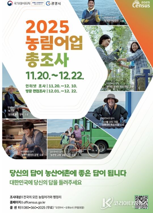 코리아타임뉴스 전남취재본부 | 광양시는 11월 20일부터 12월 22일까지 ‘2025 농림어업총조사’를 실시한다고 밝혔다.