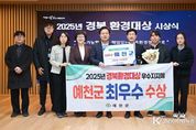 코리아타임뉴스 경북취재본부 | 예천군은 22일 경상북도 주관 ‘2025년 경북환경대상’ 평가에서 최우수상을 수상하며 환경 전반에 걸친 우수한 정책 추진 성과를 인정받았다. 경북환경대상은 도내 시·군을 대상으로 ▲기후환경정책분야 ▲환경관리분야 ▲맑은물정책분야 ▲정부합동평가 지표 등 4개 분야에 대해 평가를 실시해 우수 지자체를 선정하는 상이다. 예천군은 올해 탄소중립 실천을 위한 군민 맞춤형 교육 확대, 클린예천 만들기 정책 추진, 취수원 관리와 수질오염사고 대응 역량 강화 등 전 분야에서 고른 성과를 거두며 최우수라는 평가를 받았다. 예천군 관계자는 “이번 경북환경대상 최우수 수상은 탄소중립 실천 맞춤형 교육, 클린예천만들기와 같이 군민과 함께 추진해온 환경정책의 성과”라며, “앞으로도 기후위기 대응과 쾌적한 환경 조성을 위해 실효성 있는 환경정책을 지속적으로 추진해 나가겠다”고 밝혔다.