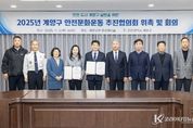 코리아타임뉴스 사회팀 | 인천광역시 계양구는 안전문화 정착 및 민관 협력 네트워크 강화를 위해 3일 구청 영상회의실에서 ‘안전문화운동 추진협의회’ 회의를 개최했다. ‘계양구 안전문화운동 추진협의회’는 지속가능한 안전문화 확산을 목표로 계양구 지역 공공기관장 및 민간단체장 등 19명으로 구성된 협의체로, 구민 안전의식 제고를 위한 캠페인 및 홍보, 안전교육 발굴 등 지역사회 안전문화 진흥의 중심 역할을 담당하고 있다. 이번 회의에서는 ▲2025년 안전문화운동 추진실적 및 2025년 시행계획 보고 ▲겨울철 자연재난(대설) 대응계획 공유 ▲안전문화 실천방안에 대한 의견수렴이 이뤄졌다. 참석 위원들은 실효성 있는 안전문화운동 실천 방안과 민관 협력 강화를 위한 다양한 의견을 제시하며 활발한 논의를 펼쳤다. 윤환 계양구청장은 “재난 유형이 갈수록 다양해지고 복잡해지는 만큼 모든 기관과 단체가 유기적으로 협력하는 것이 무엇보다 중요하다.”라며 “민관이 함께하는 안전문화운동 추진협의회를 통해 실질적인 협조체계를 구축하고, 구민이 체감할 수 있는 안전한 계양구를 만들어 나가겠다.”라고 말했다.