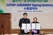 코리아타임뉴스 전남취재본부 | 전남 함평군이 해외 시장에서 축적해 온 신뢰를 바탕으로 수출 확대의 결실을 맺으며, 글로벌 농식품 시장 공략에 속도를 내고 있다. 22일 함평군은, 캄보디아 현지 유통업체 SREYMOM FRUIT SHOP(이하 슬레이맘)과 이날 함평군청에서 샤인머스캣·딸기·태추단감 등 30만 불 규모의 농특산물 수출 확대 협약을 체결했다. 협약은 지난해 8월 27일 캄보디아 현지에서 체결한 ‘함평군 농산물 수출·입 업무협약(MOU)’ 이후 양측이 지속적인 협력 관계를 이어온 가운데, 그간의 수출 성과와 상호 신뢰를 바탕으로 수출 품목과 규모를 한 단계 확대하기 위해 추진됐다. 이날 협약식에는 함평군 관계자 8명과 온 슬레이맘 대표를 비롯한 슬레이맘 관계자 5명이 참석해 수출 확대 방안과 캄보디아 시장 진출 전략에 대해 의견을 교환하며 협력 의지를 다졌다. 협약에 따라 함평군은 기존 샤인머스캣 중심의 수출 구조에서 벗어나 딸기와 태추단감, 만감류까지 수출 품목을 확대해 농가의 판로를 넓히고 소득 증진에 힘쓸 계획이다. 군은 이번 캄보디아 수출 확대를 계기로 함평군 공식 수출