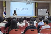 코리아타임뉴스 사회팀 | 충청북도교육청 직속기관 국제교육원 부설 영재교육원은 11월 3일과 4일, 충주와 청주에서 각각 영어영재교육 수료식을 열고, 2025학년도 교육과정을 성공적으로 마무리했다. 초등학교 5학년부터 중학교 2학년 영어영재교육 참여 학생 68명(충주 36명, 청주 32명)을 비롯해 보호자와 담당 교사가 참석해, 한 해 동안의 성과를 함께 나누는 시간을 가졌다. 교육활동 동영상 시청을 시작으로, 학생들의 수료 소감 발표, 수료증 수여 등의 순서로 진행됐으며, 학생 발표 시간에는 큰 호응이 이어졌다. 탄금중학교 1학년 이하율 학생은 “매주 원어민 선생님들과 영어로 학습할 수 있어 유익하고 즐거운 시간이었어요. 벌써 종강이라 아쉽고, 내년에도 꼭 참여하고 싶어요.”라며 소감을 전했다. 올해 영어영재교육은 ▲원어민 교사와 함께하는 영어 수업 ▲리더십‧진로‧세계시민교육 특강 ▲유네스코 아시아태평양 국제이해교육원, 국립외교원 방문 등 현장 체험 학습 ▲충북 청소년 국제포럼 등 다양한 경험을 할 수 있는 과정으로 운영됐다. 참가 학생들은 환경, 사회와 법, 문학, 뉴스와 대중매체,