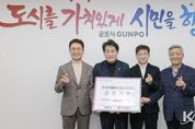 코리아타임뉴스 사회팀 | 경기 군포시는 지난 19일 경기도마을버스운송사업조합 군포지부로부터 지역 내 어려운 이웃을 돕기 위한 이웃돕기 성금 300만원을 기탁받았다고 밝혔다. 이날 기탁식에는 하은호 군포시장과 경기도마을버스운송사업조합 군포지부 소속 업체(군포운수, 사랑교통, 오성교통, 행복운수) 대표자들이 참석해 담소를 나눴다. 경기도마을버스운송사업조합 군포지부 관계자는“마을버스는 지역 주민의 일상과 가장 가까운 교통수단인 만큼, 지역사회와 상생하는 역할 또한 중요하다고 생각한다”며 “앞으로도 나눔과 사회공헌 활동을 지속적으로 이어가겠다”고 전했다. 이에 하은호 군포시장은 “어려운 시기에도 지역 이웃을 위한 따뜻한 나눔을 실천해 주신 관내 마을버스운송사업조합에 깊이 감사드린다”며 “기부금은 도움이 필요한 분들께 소중히 전달하겠다”고 말했다. 이번 성금은 군포지부 소속 4개 업체의 자발적인 참여로 마련된 것으로, 관내 저소득층·취약계층 지원을 위해 사용될 예정이다.
