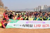 코리아타임뉴스 경남취재본부 | 진주시는 26일 식목일을 맞아 망진산 일원에서 ‘제81회 식목일 나무 심기 행사’를 개최했다. 이번 행사는 기후변화 대응과 탄소중립 실천을 위한 녹색 환경을 조성하기 위해 마련돼 진주시와 혁신도시 이전 공공기관, 산림 단체, 천전동 봉사단체, 경상국립대 학생 등 300여 명이 참여했다. 참석자들은 남강과 도심이 한눈에 내려다보이는 망진산 중턱의 약 1.5ha에 진주시의 시화와 시목인 석류와 대추나무를 비롯해 산벚나무, 산딸나무, 석류나무 등 꽃이 아름다운 나무와 칠엽수, 계수나무 등 다양한 수종의 나무를 750여 그루를 심었다. 이날 행사가 진행된 망경공원은 진주의 역사와 문화를 함께 체험할 수 있도록 ‘비거’를 테마로 조성되고 있다. 현재 전망대와 전통문화 정원, 전통문화체험관, 주차장 등 공원의 주요 시설들의 공사가 활발히 진행되고 있다. 향후 망경공원 조성 사업이 마무리되고 숲이 조성되면 공원을 찾는 시민들에게 쾌적한 휴식 공간을 제공할 것으로 기대된다. 또한 최근 따뜻한 봄 날씨로 야외 활동이 늘어남에 따라 산림 보호의 중요성을 되새기고 산불 예방에