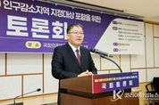 코리아타임뉴스 경남취재본부 | 창원특례시는 11월 10일 월요일 14시, 국회의원회관 제3세미나실에서 ‘통합 지방자치단체 행정구 인구감소지역 지정 대상 포함의 당위성’을 주제로 국회토론회를 개최했다. 이번 행사는 최형두 국회의원과 창원특례시가 주최‧주관하였으며, 지방 소멸에 대응하고 통합 자치단체의 행정구 인구감소지역 지정 필요성에 대한 공감대를 확산하기 위해 지역구 국회의원, 시의원, 행정안전부 관계자 및 연구기관 전문가, 창원특례시 시민 등 100여 명이 참석하여 진행됐다. ▲최형두 국회의원은 오늘 토론회의 주제가 단순히 특정 행정구역의 문제가 아니라 대한민국 전체의 지역 균형발전이라는 큰 틀에서 반드시 해결해야 할 딜레마 ▲윤한홍 국회의원은 인구소멸과 도시 경쟁력 약화를 극복하기 위해 출범한 통합시가 제도적 허점으로 인구감소 대응에 어려움을 겪는다면 향후 기초자치단체 간 통합을 추진하려는 시도 또한 위축될 것이 자명 ▲김종양 국회의원은 현장의 목소리와 창원의 현실이 정부 정책에 세밀하게 반영될 수 있도록 노력 ▲허성무 국회의원은 오늘 토론회가 제도 개선을 위한 시민과 지역사회의 공감대를 형성하고 나아가 입법 추진의 든