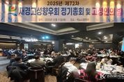 코리아타임뉴스 경남취재본부 | 재경고성향우회(회장 김영수)는 12월 11일, 서울시 성동구 레노스블랑쉬 연회장에서 2025년 제72차 정기총회 및 고성인의 밤 행사를 개최했다. 1부에서는 내빈 및 임원소개, 고향사랑기부금 기탁식, 감사패 및 공로패 수여, 2025년 결산보고 및 2026년 활동계획 보고 순으로 진행했다. 재경고성향우회 회장 이·취임식도 함께 어우러져 김영수 재경고성향우회장이 연임했다. 특히, 재경고성향우회 회원 일동이 고향사랑기부금 300만 원을 기탁하여 자리를 빛냈다. 재경고성향우회를 위해 수고한 이용찬 자문위원, 고영양 회화면 사무국장, 백현순 여성국장이 감사패를 받았으며, 2부에서는 고향의 정을 듬뿍 나누는 만찬을 함께 하며 향우 간 화합하는 즐거운 시간을 보냈다. 김영수 회장은 “저를 신임하고 연임해 주신 향우 회원 분들께 늘 감사드리고, 저희 회원 일동이 기탁한 고향사랑기부금으로 고향 고성군의 복리 증진을 위해 살뜰히 사용해 달라”라고 말했다. 류해석 부군수는 “재경고성향우회 정기총회 개최를 축하드리며, 재경고성향우회의 고향사랑과 성원에 깊이 감사드린다”라며, “앞으로도 변
