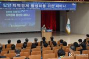 코리아타임뉴스 경남취재본부 | 경남 밀양시는 지난 28일 경남교육청 진로교육원 강당에서 전국밀양향우연합회 주최로 ‘지역경제 활성화 세미나’가 열렸다고 밝혔다. 이번 세미나는 안병구 밀양시장, 허홍 밀양시의회 의장, 현영희 전국밀양향우연합회 회장을 비롯해 향우 기업인, 주보원 밀양상공회의소 회장, 신영철 밀양시소상공인연합회 회장 등 밀양 경제인 200여 명이 참석한 가운데 성황리에 개최됐다. 이날 행사는 △기조강연 △향우 기업인 성공사례 발표 △밀양시 경제정책 설명 △스탠딩 네트워킹 순으로 진행됐다. 기조강연에서는 이경전 경희대학교 빅데이터응용학과 교수가 ‘AI 시대의 기업 대응 및 경영전략’을 주제로, 급변하는 산업 환경 속에서 기업이 나아가야 할 방향을 제시했다. 이어 향우 기업인 성공사례 발표에서는 장상환 기산전자(주) 대표이사가 기업 성장 과정과 경영 노하우를 공유하며 참석자들의 큰 호응을 얻었다. 또한 밀양시의 주요 경제 현안과 투자유치 전략에 대한 설명과 함께 향우 기업인과 밀양 경제인 간 네트워킹을 통해 실질적인 협력 방안을 모색하는 시간을 가졌다. 현영희 전국밀