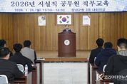 코리아타임뉴스 경남취재본부 | 창녕군은 26일 시설직 공무원 60명을 대상으로 2026년 예산실무 및 공사감독 능력 향상을 위한 ‘시설직 공무원 직무교육’을 실시했다. 이번 교육은 예산 편성부터 집행까지 예산실무와 설계도서 작성 및 해석으로 업무 능력을 배양하고 공사감독자의 직무능력 향상으로 견실시공을 도모하기 위해 마련됐다. 주요 내용으로 △예산 편성 및 집행 실무 △건설공사 단계별 감독 역할 및 주의점 △건축물 철거 등 분리 발주 분야 △토목 관련 용어 정리 및 감사지적 사례 등 실무에 필요한 핵심 주제로 구성됐으며, 신기술제품 우선구매율 제고를 위한 설명도 포함됐다. 성낙인 군수는 “이번 직무교육과 건설교통과장 주재 시설직 학습동아리 운영으로 직원의 기술력 강화와 실무 지식 공유, 문제 해결 능력을 높이고, 업무 전문성 확보로 행정 신뢰도와 주민 만족도를 높이겠다”고 말했다.