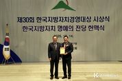 코리아타임뉴스 경남취재본부 | 경남 합천군는 10월 14일 서울 공군호텔에서 개최된 제30회 한국지방자치경영대상 시상식에서 ‘행정혁신 부문 대상’을 수상했다. 한국지방자치경영대상은 (사)한국공공자치연구원이 주최하는 지방자치단체 경영성과 평가 시상제도다. 탁월한 성과를 거둔 지방자치단체를 모범사례로 선정해 타 지자체의 벤치마킹 대상으로 삼고, 지방자치 발전에 기여하기 위해 1996년에 제정됐다. 민간부문이 지방자치단체를 평가해 시상하는 제도 중 우리나라에서 가장 권위 있는 상으로 꼽힌다. 지방자치단체 기관상은 행정혁신, 문화관광, 복지보건, 지역개발, 산업경제(도시/농촌), 기후환경 등 6개 부문과 종합대상으로 구성된다. 수상 지자체는 2차례의 전문심사와 인터뷰 심사, 주민 만족도조사, 최종 적격심사 등 4단계의 과정을 거쳐 선정된다. 합천군은 스마트 마을방송 시스템 운영, ‘동네방네 스마트를 품은 경로당’ 구축, 농기계대여은행 AI 보이스봇 도입 등 군민이 체감할 수 있는 스마트 생활서비스를 적극 추진한 점에서 높은 평가를 받았다. 김윤철 합천군수는 “3년 연속으로 한국지방자치경영대상을 수상하게 되