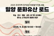 코리아타임뉴스 경남취재본부 | 밀양문화관광재단은 오는 11월 8일 오전 10시부터 오후 7시까지 예림서원과 선비문화체험관 일원에서 지역 무형유산의 가치를 시민과 함께 나누는 ‘밀양 문화유산 로드’를 개최한다고 13일 밝혔다. 이번 행사는 지난해 9월 경상남도 무형유산 공동체 종목으로 지정된 밀양아리랑을 중심으로 전통문화의 가치와 의미를 재조명하고, 시민과 관광객이 함께 어울려 즐길 수 있는 다채로운 프로그램으로 구성됐다. 프로그램은 개회식과 기조강연을 시작으로 학술 프로그램, 전통 공연, 전시·체험 등으로 이어진다. 특히 밀양아리랑 고음반과 축음기 전시, 전통놀이·공예 체험 등 참여형 콘텐츠를 통해 남녀노소 누구나 전통문화를 직접 체험하고 즐길 수 있도록 꾸며진다. 재단은 이번 행사를 통해 국가유산의 역사적 가치와 현대적 활용 가능성을 재조명하고, 공동체 중심의 전승 모델을 제시한다는 계획이다. 이치우 재단 대표이사는 “이번 행사는 지역 전통유산의 가치를 새롭게 발견하고 시민과 함께 공유하는 뜻깊은 시간이 될 것”이라며 “앞으로도 지역 무형유산이 일상에서 지속되고 다음 세대에 전해질 수