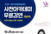 코리아타임뉴스 경남취재본부 | 사천시는 사천방문의 해를 맞아 10월 25일 토요일 오후 3시 사천시립도서관에서 ‘2025년 사천아카데미 제5강’ 강좌를 개최한다. 이번 강좌는 정문정 작가를 초빙하여 ‘말하기와 글쓰기 둘다 잘하는 방법’이라는 주제로 진행되며, 말하기와 글쓰기에 대한 명쾌한 비법을 소개할 예정이다. 정문정 작가는 '무례한 사람에게 웃으며 대처하는 법', '다정하지만 만만하지 않습니다' 등의 베스트셀러를 집필한 작가로, 유튜브 채널 ‘정문정답’을 통해 대중과 활발하게 소통하고 있다. 참여 희망자는 10월 18일 토요일 오전 10시부터 사천시립도서관 홈페이지에서 예매(1인 2매, 선착순 마감)해야 수강이 가능하다. 수강료는 무료이다. 자세한 내용은 사천시평생학습센터 평생학습팀또는 도서관관리팀으로 문의하면 된다.