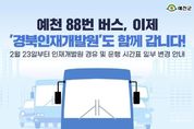 코리아타임뉴스 경북취재본부 | 예천군은 23일부터 88번 농어촌버스의 일부 운행 회차를 인재개발원까지 연장 경유해 운행한다. 작년 9월 칠곡군에서 예천군 호명읍으로 이전한 경북인재개발원은 연간 1만 1,800여 명의 교육생이 입교하고 있으나, 예천읍으로 직접 연결되는 노선이 없어 교육생들이 버스를 환승하거나 1km 이상 도보로 이동하는 불편을 겪어왔다. 이에 예천군은 경북인재개발원의 요청과 교육생들의 목소리를 수렴해, 운수업체인 예천여객과 협의를 거쳐 전체 노선을 변경하는 대신, 이용 수요가 집중되는 시간대에 선별적으로 투입하기로 결정했다. 이를 통해 기존 버스 이용객의 혼란은 최소화하면서 교육생들의 이동 편의를 보장하는 효율적인 노선을 운영할 계획이다. 이번 노선 개편으로 88번 버스는 기존 오천리(호명읍 보건지소)와 아이파크 사이 구간에 '인재개발원'이 추가된다. 구체적인 운행 시간을 살펴보면, 오전(신도시 방면)에는 예천여객에서 8시에 출발해 8시 30분경 인재개발원을 거쳐 8시 50분에 경북교육청에 도착, 오후(예천읍 방면)에는 경북교육청에서 16시 20분에 출발, 16시 40분