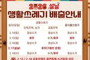 코리아타임뉴스 경북취재본부 | 포항시는 설 명절을 맞아 시민들의 쓰레기 배출 불편을 최소화하고 쾌적한 환경에서 연휴를 보낼 수 있도록 ‘생활쓰레기 관리 종합대책’을 추진한다. 이번 대책은 오는 9일부터 20일까지 12일간 집중 시행된다. 연휴 전인 9일부터 14일까지는 불법 투기 및 관리 취약지에 대한 중점 수거 활동을 실시한다. 29개 읍·면·동에서는 공무원과 자생단체, 지역 주민들이 참여하는 명절맞이 대청소를 통해 주요 도로와 상습 쓰레기 취약지에 쌓인 쓰레기를 일제 점검할 계획이다. 설 연휴 기간인 14일부터 18일까지는 생활쓰레기 종합상황실을 운영해 쓰레기 적체 및 투기 신고에 신속히 대응할 예정이다. 특히 설 당일인 17일에는 생활·음식물 쓰레기 수거가 전면 휴무지만 기동 청소반을 운영해 주요 간선도로와 다중이용시설의 쓰레기를 특별 수거한다. 음식물쓰레기는 15일과 설 당일인 17일을 제외한 연휴 동안 정상 수거해 악취 발생을 최소화한다. 포항시는 앞서 지난 6일 생활쓰레기 수거와 처리를 담당하는 청소대행업체, 재활용선별장, SRF(생활폐기물 에너지화시설) 관계자들