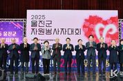 코리아타임뉴스 경북취재본부 | 울진군은 지난 12월 3일 울진군민체육관에서 (사)울진군종합자원봉사센터 주관으로 지난‘2025 울진군 자원봉사자대회’를 개최했다. 이날 대회에는 500여 명의 자원봉사자 및 관계자가 참석한 가운데 한 해 동안 지역사회를 위해 헌신한 자원봉사자들의 노고를 격려하는 시간을 가졌다. 이번 대회는 '당신이기에 가능했던 2025, 우리는 함께 빛나는 별'이라는 주제로 진행됐으며, 1부는 자원봉사자 노래자랑으로 펼쳐져 행사장의 분위기를 한층 뜨겁게 달궜다. 2부에 이어진 기념행사에는 한 해 동안 사랑과 나눔을 실천하며 자원봉사 문화 확산에 기여한 자원봉사활동 유공자들에 대한 시상이 진행됐다. 올해 자원봉사 유공 표창에는 18명의 우수 자원봉사자와 16개의 단체, 1곳의 기업이 선정돼 지역사회 곳곳에서 기여한 공로를 인정받았다. 백태진 이사장은 “자원봉사자 한 분 한 분 작은 실천이 모여 울진을 더 따뜻하게 만들고 있다”며“오늘의 주인공은 바로 이 자리에 함께한 여러분이다. 여러분의 헌신이 있기에 울진이 올해도 흔들리지 않고 빛날 수 있었다”라고 전했다.