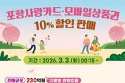 코리아타임뉴스 경북취재본부 | 포항시가 지역 경기 회복과 민생경제 안정을 위해 내달 3일부터 카드형·모바일 포항사랑상품권(포항사랑카드) 230억 원을 10% 할인된 금액으로 판매한다. 시는 이달까지 포항사랑상품권 830억 원 발행한 데 이어, 이번 할인 판매분 230억 원 추가 발행으로 올해 연초에만 총 1,060억 원 규모의 포항사랑상품권을 유통하게 된다. 골목상권과 전통시장에 집중 공급해 지역 상권 소비를 촉진하고, 민생경제 회복을 이어간다는 취지다. 이번 할인 판매는 2월과 같은 10% 할인율이 적용되며, 개인 구매 한도는 월 40만 원, 보유 한도는 70만 원이다. 시민들의 가계 부담을 덜고 소상공인 매출 증대에도 실질적인 도움이 될 것으로 기대된다. 포항사랑카드 충전은 3월 3일 0시 15분부터 ‘iM샵 앱’ 또는 지역 내 104개 판매 대행 금융기관 영업점을 통해 가능하다. 카드 판매 대행 금융기관 현황은 포항사랑상품권 홈페이지에서 확인할 수 있으며, 시는 시민 편의를 위해 판매대행점을 지속 확대해 나갈 계획이다. 포항사랑카드는 실물 카드 결제는 물론 ▲삼성페이 ▲네이버페이
