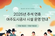 코리아타임뉴스 기동취재팀 | 여주도시공사는 2025년 추석 명절을 맞아 고향을 찾는 귀성객과 시민들의 편의를 위해 주요 시설 운영시간 조정, 무료개방 등 특별 서비스를 제공한다고 2일 밝혔다. 공사는 우선, 추모객이 집중되는 여주추모공원의 추석기간(5일~7일) 운영 시간을 기존 오전 9시~오후 6시에서 오전 7시~오후 6시로 2시간 조기개장하여 확대운영한다. 이를 통해 명절연휴 기간 원활한 참배가 가능하도록 편의를 도울 예정이다. 또한, 시민과 방문객들의 주차 편의를 위해 공영주차장을 연휴기간(3일~9일) 전면 무료 개방한다. 이를 통해 귀성객과 지역 상권을 찾는 이용객들이 보다 편리하게 주차할 수 있을 것으로 기대된다. 교통약자 이동지원센터의 경우, 특별교통수단은 추석기간(5일~7일) 무료 운행하며, 바우처 택시는 정상 요금으로 운영된다. 공사는 교통약자의 이동권 보장을 위해 차량 안전 점검을 마치고 원활한 운행 서비스를 제공할 계획이다. 종합운동장 등 체육시설과 오학, 점동 파크골프장은 추석기간(5일~7일)에만 휴무이고 그 외 휴일은 정상운영하며, 이 중 파크골프장은 대체공휴일(8일)과 한글날에
