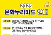 코리아타임뉴스 기동취재팀 | 정부 정책에 따라 2026년부터 통합문화이용권(문화누리카드)과 청년문화예술패스 제도가 개편된다. 이에 따라 양주시는 개편 기준에 맞춰 지역대상자를 대상으로 해당 사업을 확대 시행한다고 밝혔다. 통합문화이용권(문화누리카드)은 6세 이상 기초생활수급자와 차상위계층을 대상으로 문화·여행·체육 활동을 지원하는 사업으로, 2026년에는 지원 인원이 16,386명으로 전년 대비 1,687명 증가한다. 또한 1인당 지원 금액도 기존 14만 원에서 15만 원으로 1만 원 인상된다. 특히 청소년(13~18세)과 생애전환기(60~64세) 대상자는 1만 원이 추가 지원돼 총 16만 원을 지원받게 된다. 청년층의 문화 향유 기회를 넓히기 위한 청년문화예술패스도 지원 대상이 확대된다. 2026년 지원 인원은 1,645명으로 전년 대비 727명 증가하며, 지원 연령 역시 기존 19세에서 19~20세로 확대된다. 통합문화이용권(문화누리카드)은 2월 2일부터 누리집 또는 각 읍면동 행정복지센터를 방문해 신청 가능하며, 자세한 사항은 문화누리카드 고객지원센터로 문의하면 된다. 청년문화예술