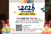 코리아타임뉴스 기동취재팀 | 양주시가 운영하는 양주시 농특산물 온라인 쇼핑몰 양주농부마켓에서 다가오는 설 명절을 맞아 고객들에게 특별한 혜택을 제공하고자 설맞이 할인 이벤트를 진행한다. 이번 이벤트는 1월 26일부터 2월 10일까지 진행하고, 기간 내 양주농부마켓 로그인 시 20% 할인쿠폰 2장이 자동 지급된다. 단, 예산 소진 시 조기 종료될 수 있다. 양주시 관계자는 “설 명절을 앞두고 시민들이 부담없이 풍성한 명절을 준비할 수 있도록 이번 이벤트를 마련했다”며 “양주시에서 생산한 품질 좋은 농축산물과 가공품 등 다양한 상품과 선물세트가 준비돼 있으니 많은 관심과 구매를 부탁드린다”고 말했다.