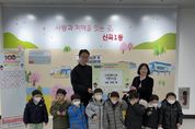 코리아타임뉴스 기동취재팀 | 의정부시 신곡1동주민센터는 12월 22일 신동화나라 어린이집이 연말을 맞아 성금 40만 원을 기부했다고 밝혔다. 이번 기부는 어린이집에서 자체적으로 진행한 연말 바자회 ‘콩콩마켓’의 수익금으로 마련됐다. ‘작은 것들이 모여 커지는 사랑’을 주제로 열린 바자회는 아이들이 직접 참여해 물건을 사고팔며 나눔의 의미를 배우는 시간으로 진행됐다. 기부식에는 원아 8명과 교사 3명이 참석해 정성스럽게 모은 성금을 전달했다. 이강희 원장은 “아이들이 스스로 나눔의 가치를 느끼고 실천할 수 있는 계기가 됐다”며 “앞으로도 지역사회와 함께 성장하는 교육을 이어가겠다”고 전했다. 김영란 동장은 “어린이들의 따뜻한 마음이 지역사회에 큰 울림을 준다”며 “정성껏 모아주신 성금은 꼭 필요한 이웃에게 소중히 전달하겠다”고 말했다.