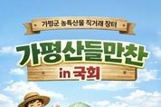 코리아타임뉴스 기동취재팀 | 설 명절을 앞두고 가평군의 우수 농특산물을 한자리에서 만날 수 있는 직거래 장터가 국회에서 열린다. 소비자와 생산자를 직접 연결하는 이번 행사는 도시민들에게 가평 농산물의 우수성과 가평의 관광자원까지 함께 알리는 자리가 될 전망이다. 가평군은 오는 11일 오전 10시부터 오후 3시까지 국회 소통관 앞마당에서 ‘가평산들만찬마켓 in 국회’ 농특산물 직거래 장터를 개최한다고 밝혔다. 이번 행사는 김용태 국회의원실이 주최하고 가평군이 주관한다. 직거래 장터는 가평군의 청정 자연환경에서 생산된 신선한 먹거리를 합리적인 가격에 선보여 도시와 농촌이 상생하는 직거래를 활성화하기 위해 마련됐다. 동시에 가평의 주요 관광지와 축제, 고향사랑기부제 홍보도 함께 진행해 지역경제 활성화를 도모한다. 행사장에는 10동 내외의 몽골텐트에 판매·홍보 부스를 설치해 가평에서 생산된 농특산물 직거래 행사와 관광·축제 홍보가 이뤄진다. 현장에서는 참여 농가들이 직접 생산한 참송이버섯과 송화버섯, 배, 잣, 가평 한우를 비롯해 쌀쿠키, 오디청, 오디잼, 수제 마늘빵, 잣 만주 등 가공식품과 차류 제품까지 폭넓게 준