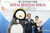 코리아타임뉴스 기동취재팀 | 여주시는 지난 29일 시청 시장실에서 이충우 여주시장과 관련 국‧과장이 참석한 가운데 EBS ‘자이언트 펭TV’의 마스코트 캐릭터 펭수와, 한국무용가 이경화를 홍보대사로 위촉했다고 밝혔다. 펭수는 2019년 4월 EBS 어린이 프로그램 ‘자이언트 펭TV’로 혜성처럼 등장하여 어린이 팬층을 넘어서 전 세대의 귀여움까지 독차지하는 유례없는 인기를 선보이며 현재 구독자 170만명의 유튜브 채널 마스코트 캐릭터로 활동하고 있으며, 신곡을 3곡이나 출시한 가수이기도 하다. 한편 펭수는 2023년 여주도자기축제를 시작으로 3년 연속 도자기축제에 초대손님으로 참석하면서 여주와의 사랑을 이어왔다. 작년 도자기축제에서는 펭수의 캐릭터가 새겨진 도자기가 완판될 정도로 여주시민의 열렬한 환영을 받아왔다. 이날 함께 홍보대사로 위촉된 이경화 (사)오연문화예술원 이사장은 1988년 서울올림픽 폐막식 공연, 2002년 한일월드컵 개막식 공연의 안무와 지도를 맡았던 한국을 대표하는 무용가이자 안무가로 활동해왔으며, 전세계 400여개 도시에서 한국 무용의 아름다움을 전파한 공로로 2003년 해외홍보유공 국무총리