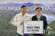 코리아타임뉴스 기동취재팀 | 가평군 청평면 대성3리 마을회가 최근 행정복지센터를 찾아 저소득 취약계층 지원을 위한 이웃돕기 성금 50만원을 기탁했다. 이번 성금은 지역 내 어려운 이웃을 돕기 위해 대성3리 주민들이 뜻을 모아 마련한 것으로, 청평면 내 취약계층 지원에 사용될 예정이다. 천대열 대성3리 이장은 “대성3리 마을회는 어려운 이웃들을 위한 나눔에 뜻을 함께하고 있으며 살기 좋은 마을을 만들기 위해 노력하고 있다”며 “앞으로도 소외된 이웃을 위한 나눔을 지속적으로 실천해 지역사회에 보탬이 되겠다”고 말했다. 박성규 청평면장은 “지역사회에 대한 관심과 애정으로 뜻깊은 나눔을 실천해 주신 대성3리 마을회와 이장님께 감사드린다”며 “기탁해 주신 성금은 도움이 필요한 이웃들에게 소중히 전달하겠다”고 밝혔다.