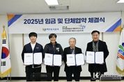 코리아타임뉴스 기동취재팀 | 여주도시공사와 민주노총 공공운수노조 여주도시공사지회는 12월 9일 여주도시공사 사옥에서 2025년 임금 및 단체협약 체결식을 개최했다고 밝혔다. 이번 협약은 상호 신뢰와 존중을 바탕으로 진행된 성실한 교섭의 결실로, 노사 상생과 지속 가능한 발전을 위한 중요한 발판이 될 전망이다. 공사와 노동조합은 이번 협약을 통해 직원들이 안정적인 근무여건 아래 역량을 발휘할 수 있는 환경을 조성하고, 공공기관으로서 사회적 책임을 다하기 위한 제도 개선과 협력 체계를 강화해 나갈 방침이다. 임명진 사장은 “이번 임금·단체협약은 노사 간 소통과 이해를 바탕으로 이루어낸 결실”이라며, “앞으로도 신뢰 기반의 노사 협력을 통해 시민에게 더 나은 공공서비스를 제공할 수 있도록 노력하겠다"고 밝혔다. 여주도시공사는 앞으로도 합리적인 노사관계 정착을 위해 소통과 협력을 강화하고, 시민 중심의 공기업으로서 책임과 역할을 다하기 위한 다양한 노력을 이어갈 계획이다.