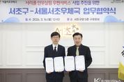 코리아타임뉴스 기동취재팀 | 서울 서초구는 16일 서초구청 5층 구청장실에서 서초우체국과 ‘서리풀 안부살핌 우편서비스 사업’ 추진을 위한 업무협약을 체결했다고 밝혔다. 이번 협약은 행전안전부가 주관하는 ‘2026년 읍면동 스마트 복지·안전 개선모델 지원사업’(안부살핌 우편서비스 사업 부문) 공모에 서초구가 서울시 자치구 중 유일하게 선정된 데 따른 것으로, 구는 오는 4월부터 12월까지 ‘서리풀 안부살핌 우편서비스 사업’을 본격 추진할 계획이다. 사업은 사회적 고립가구 중 지역사회 집중관리가 필요한 가구를 선정해 주기적으로 안부를 확인하고 월 2회 생필품을 택배로 전달하는 방식으로 운영된다. 우체국은 서초구 지원 물품을 대상가구에 배송하는 과정에서 집배원이 직접 가정을 방문해 안부를 확인하고, 건강 상태와 주거·위생 환경 등 현장에서 확인된 위기 징후를 구에 신속히 회신한다. 구는 전달받은 안부 확인 결과와 위기 정보를 바탕으로 긴급지원, 돌봄, 사례관리 등 맞춤형 복지서비스를 빠르게 연계해 복지사각지대 해소와 위기가구 지원을 강화할 예정이다. 한편, 서초구와 서초우체국은 2023년부터 ‘서리풀 복지등기우편 서