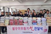 코리아타임뉴스 기동취재팀 | 가남농업경영인회는 지난 5일, 회원들이 직접 농사지은 쌀(10kg) 85포를 가남읍행정복지센터에 기탁하며 어려운 이웃을 위한 따뜻한 나눔을 실천했다. 이 날 기탁된 쌀은 가남농업경영인회 회원들이 한 해 동안 정성껏 경작한 수확물 중 일부를 모아 마련한 것으로, 연말연시를 맞아 소외되기 쉬운 지역 주민들에게 든든한 식사를 제공하고자 하는 회원들의 뜻을 담았다. 가남농업경영인회는 매년 지속적인 나눔 활동을 통해 지역 사회에 기여하고 있으며, 특히 직접 생산한 농산물을 기부함으로써 그 의미를 더하고 있다. 기탁된 쌀은 가남읍 내 독거노인, 저소득 가정 등 도움이 필요한 이웃들에게 전달될 예정이다. 송병덕 회장은 "회원들이 땀 흘려 지은 쌀이 추운 겨울을 보내는 이웃들에게 작은 위로와 힘이 되길 바란다"며, "앞으로도 지역 농업 발전뿐만 아니라 이웃 사랑 실천에도 앞장서겠다"고 밝혔다. 임영석 가남읍장은 "어려운 경제 여건 속에서도 직접 수확한 귀한 쌀을 기탁해주신 가남농업경영인회에 진심으로 감사드린다"며, "기탁해주신 소중한 쌀은 그 마음까지 담아 꼭 필요한 이웃들에게 잘 전