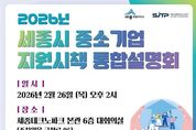 코리아타임뉴스 김태훈 기자 | 2026년 세종시 기업지원사업 통합설명회가 오는 2월 26일 오후 2시, 세종테크노파크 본관동 6층 대회의실에서 열린다. 세종특별자치시와 세종테크노파크는 지역기업의 지원사업 정보 접근성을 높이고 고객 만족도 향상을 위해 세종지역 통합 설명회를 개최한다고 밝혔다. 이번 설명회는 세종시와 지역 기업지원 유관기관이 추진하는 다양한 기업지원사업을 한 자리에서 종합 안내하고, 기관별 상담창구를 일원화해 기업의 편의성을 높이기 위해 마련된다. 세종시 중소기업 지원시책 안내를 시작으로 세종테크노파크를 포함한 10개 기관이 기술개발, 수출, 일자리, 창업, 특허, 자금 등 9개 분야 대상 주요 지원사업에 관해 소개할 예정이다. 또한, 설명회 종료 후에는 기관별 상담 부스를 운영하여 기업 맞춤형 1:1 현장 상담을 제공한다. 이를 통해 기업들은 관심 사업에 대한 세부 지원 요건, 신청 절차, 향후 일정 등을 직접 안내받을 수 있다. 세종시 관계자는 “이번 통합설명회는 기업이 필요한 지원정보를 한 자리에서 확인하고 즉시 상담까지 받을 수 있도록 기획했다.”라며, “앞으로도