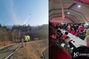 코리아타임뉴스 김태훈 기자 | 서산 대산읍에서 발생한 산불이 한국석유공사 비축기지와 인접 석유화학단지를 위협하는 긴박한 상황으로 번졌으나, 소방과 유관기관의 신속하고 집중적인 방어작전으로 국가 핵심 에너지 시설을 지켜냈다. 서산소방서에 따르면 화재는 2월 21일 오후 1시 35분경 대산읍 대죽리 일대에서 발생했다. 현장은 강풍과 건조한 기상 여건 속에 불길이 빠르게 확산되며 석유화학단지 방향으로 번졌고, 특히 한국석유공사 비축기지 인근 산림까지 화선이 형성되면서 국가 에너지 기반시설에 대한 직접적 위협이 현실화됐다. 이에 소방은 단순 진화가 아닌 ‘시설 사수’에 초점을 맞춘 전략적 대응에 돌입하여 대응2단계를 발령했으며, 화세를 차단하기 위한 방어선 구축과 함께 비축기지 주변 집중 살수, 헬기 공중진화, 지상 인력 분산 배치 등 입체적 작전을 전개했다. 한국석유공사와 롯데케미칼, 현대오일뱅크, LG화학, KCC 등 주요 산업체와의 공조도 신속히 이뤄졌다. 이틀간 1,050명의 인력과 장비 130대, 최대 24대의 헬기가 투입됐으며, 유관기관 공동대응으로 전면적인 방어체계가 운영됐다. 일몰 이후 지상
