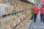 코리아타임뉴스 김태훈 기자 | 제20회 순창장류축제를 맞아 순창전통고추장민속마을에 전통 메주를 전시한 ‘순창 메주거리’를 조성했다. 이번에 조성된 메주거리에는 총 33개의 거치대에 전통 방식으로 정성껏 엮은 메주 약 4,500개가 걸려 있어, 방문객들의 시선을 사로잡고 있다. 짚으로 정성스레 엮은 메주들은 제20회 순창장류축제 행사장의 정겨움과 운치를 한층 더해주고 있다.