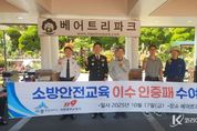 코리아타임뉴스 김태훈 기자 | 세종북부소방서가 17일 전동면에 위치한 베어트리파크를 ‘소방안전교육 우수 인증공원’으로 선정하고 인증패를 수여했다. 이날 행사에는 김전수 세종북부소방서장, 이선용 베어트리파크 회장 등 양 기관 관계자 10여 명이 참석해 환영 인사와 인증패 전달, 기념 촬영 등을 진행했다. 또한, 세종북부소방서는 베어트리파크 소방시설과 주요 시설을 점검하고, 소방안전 관리 개선 및 상호 협력 방안을 논의했다. 소방안전교육 우수 인증공원은 시민과 밀접한 기관·단체의 소방안전 역량을 강화하기 위해 추진 중인 ‘소방안전교육 인증제’의 일환이다. 베어트리파크는 전 직원 90% 이상이 심폐소생술(CPR), 자동심장충격기(AED) 사용법, 화재 대피 등 법정 수준의 응급처치 및 맞춤형 소방안전 교육을 이수해 높은 안전 수준을 인정받았다. 김전수 세종북부소방서장은 “베어트리파크의 적극적인 노력은 다른 기관의 모범이 될 것”이라며 “이번 인증을 계기로 안전 문화가 세종 전역으로 확산되길 기대한다”고 말했다