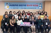 코리아타임뉴스 김태훈 기자 | 광양여성새로일하기센터는 지난 19일 백운산자연휴양림에서 여성일자리 창출과 취업 지원 강화를 위해 여성일자리 유관기관 종사자를 대상으로 워크숍을 개최했다. 이번 워크숍에는 유관기관 종사자 24명이 참석해 여성 고용 정책 현황을 공유하고, 여성일자리 지원을 위한 기관 간 협력 방향을 모색했다. 행사는 ▲광양여성새로일하기센터 운영 현황 소개 ▲기관 간담회 ▲종사자 소통 역량 강화 교육 ▲힐링 프로그램(목재문화체험) 순으로 진행됐으며, 참석자들은 현장의 다양한 과제를 공유하는 시간을 가졌다. 문광미 센터장은 “여성일자리 지원을 위한 유관기관 간 협력 체계를 더욱 공고히 하는 계기가 됐다”며, “앞으로도 현장 의견을 반영한 맞춤형 여성 일자리 정책을 적극 추진해 나가겠다”고 밝혔다. 한편, 광양여성새로일하기센터는 취업을 희망하는 여성을 대상으로 1:1 맞춤형 취업 상담과 취업 정보 제공, 직업교육훈련, 새일여성인턴십 운영 및 사후관리 등 종합적인 취업 지원 서비스를 제공하고 있다. 기타 취업 관련 문의 사항은 광양여성새로일하기센터로 문의하면 된다.