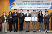코리아타임뉴스 김태훈 기자 | 전북특별자치도의회는 17일 국회입법조사처와 입법정책 분야의 상호 교류 및 협력을 위한 업무협약(MOU)을 체결했다. 문 의장을 비롯한 이명연·김희수 부의장, 서난이 대변인, 이관후 국회입법조사처장 등이 참석한 가운데 진행된 이날 협약은 지방의회의 입법·정책 조사분석 능력을 높여 지역 현안에 대한 대응력을 강화하기 위해 마련됐다. 협약 기간은 2년이다. 양 기관은 상호 이해와 신뢰를 바탕으로 ▲지역 발전을 위한 입법정책 자문 및 간담회 개최 ▲연구보고서 및 정책자료 공유 ▲지방분권·지역균형발전 관련 공동연구 ▲지방의회 입법정책 역량 강화 사업 등을 함께 추진하기로 합의했다. 전북특별자치도의회는 이번 협약에 따라 입법정책 역량을 한층 강화하고, 의정 전문성 제고를 위한 협력 기반을 지속적으로 확대해 나갈 방침이다. 문승우 의장은 “지방정부의 입법 역량이 어느 때보다 중요한 시기에, 중앙의 입법 연구기관과 긴밀한 협력 체계를 구축하게 되어 매우 뜻깊게 생각한다”며 “이번 업무협약을 계기로 양 기관이 지속적으로 교류하고 협력하여 도민에게 실질적으로 도움이 되는 입법정책을 만들