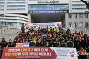 코리아타임뉴스 김태훈 기자 | 해남소방서가 30일 오전 해남군청 앞에서 연말연시 화재사고 예방을 위한 캠페인을 전개하며 군민 안전확보에 나섰다. 이날 캠페인에는 해남군수를 비롯해 해남소방서장, 의용소방연합회장 등 50명이 참여한 가운데 연말연시를 맞아 증가할 수 있는 화재 위험 요인을 알리고 생활 속 안전수칙 준수를 당부했다. 참가자들은 군청 앞 주요 통행 구간에서 군민들을 대상으로 ▲겨울철 난방기기 안전사용 요령 ▲주택용 소방시설(소화기ㆍ단동경보형감지기) 설치의 중요성 ▲안심콜 서비스 가입 홍보 등을 집중적으로 홍보하며 리플릿 배부와 현장 안내 활동을 펼쳤다. 특히 전기장판과 난로 등 난방기기 사용이 잦아지는 겨울에는 작은 부주의가 대형 화재로 이어질 수 있다는 점을 강조했다. 박춘천 해남소방서장은 “화재는 예방이 가장 중요하다”며“연말연시 화재 위험이 높아지는 시기인만큼 군민 여러분께서 안전수칙을 다시 한번 점검해 주시길 당부드린다.”고 말했다.