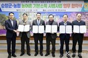 코리아타임뉴스 김태훈 기자 | 순창군은 농어촌 기본소득 시범사업의 안정적인 추진을 위해 2일 군청 2층 영상회의실에서 NH농협 순창·동계·구림·서순창농협과 업무협약을 체결했다. 이번 협약은 농어촌기본소득 지급과 연계한 지역 내 소비 촉진과 상생 구조를 구축하기 위한 것으로, 기본소득이 지역 안에서 실질적인 경제 선순환으로 이어질 수 있도록 민·관 협력 체계를 강화하기 위해 마련됐다. 이번 협약을 통해 순창군과 4개 농협은 농어촌기본소득 지급 및 지역사랑상품권 운영에 필요한 발행·유통·정산 등 전반적인 업무에 상호 협력하고, 기본소득 사용으로 발생하는 매출의 일부를 지역상생 기금으로 조성해 지역 환원사업에 활용하기로 했다. 또한, 면 단위 하나로마트와 농자재판매장 등을 중심으로 기본소득 사용처를 확대하고, 찾아가는 이동장터 운영을 통해 교통·접근성문제로 불편을 겪어온 주민들의 이용편의를 개선하고 지역경제 활성화에 힘을 모을 계획이다. 더불어, 4개 농협 조합 간 연계사업으로 기본소득데이, 나눔온정장터, 로컬푸드 매장확장 운영 등 조합별 특수시책을 추진해 환원사업을 적극적으로 펼칠예정이다.