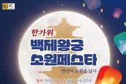 코리아타임뉴스 김태훈 기자 | 추석 전날 밤, 익산 백제왕궁이 시민들의 소망을 담은 소원등으로 환히 빛난다. 익산시는 추석 전날인 오는 10월 5일에 유네스코 세계유산 백제왕궁(왕궁리 유적)에서 '한가위 백제왕궁 소원페스타 : 천년의 소원을 담다'를 개최한다고 25일 밝혔다. 참여는 사전 예약과 현장 접수 모두 가능하다. 사전 예약은 오는 29일 오전 10시부터 마수리늘배움협회 누리집을 통해 선착순 800명을 접수하고, 현장에서도 200명을 선착순으로 모집한다. 이번 축제는 시민들이 직접 적은 소원문을 '소원등'에 달아 백제왕궁 밤하늘을 밝히며, 가족과 이웃이 함께 소망을 나누는 특별한 시간으로 꾸며진다. 소원등은 근심을 내려놓고 평안과 희망을 기원하는 상징으로 달맞이, 연등 문화 등의 풍속과 맞닿아 있다. 이에 가족의 안녕을 기원하고 풍요에 감사하는 추석의 의미를 한층 깊게 할 것으로 기대를 모은다. 행사는 오후 5시 소원문 쓰기로 시작된다. 이어 △백제의 마술사 공연 △버블쇼 △사물놀이패와 어우러지는 백제왕궁마을장터 재담마당극 등 다채로운 무대가