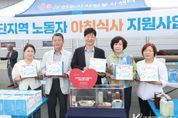 코리아타임뉴스 김태훈 기자 | 전주시와 전주시의회가 새벽 출근 산업단지 노동자들에게 든든한 아침 식사를 지원하며 건강한 하루의 출발을 응원했다. 시는 24일 오전 8시 ㈜유니온씨티 주차장(덕진구 신복로 105)에서 산단 노동자에게 김밥과 컵밥 등 간편식을 배부했다. 이날 행사는 노동자의 아침 결식 해소 및 먹거리 접근성 향상을 위한 ‘매주 수요일엔(&) 수요든든 밥상’ 사업의 일환으로 진행됐으며, 윤동욱 전주 부시장을 비롯한 전주시 관계자와 전주시의회 문화경제위원회 소속 박혜숙 위원장과 이성국 부위원장, 김원주·신유정·이보순 의원, 최지은·이국 전주시의원 등이 동참해 함께 노동자들에게 음식을 건네며 따뜻한 마음을 전했다. 이날 행사는 노동자의 아침 결식 해소와 먹거리 접근성 제고를 위해 추진 중인 ‘매주 수요일엔(&) 수요든든 밥상’ 사업의 일환으로, 지난 9월 초부터 사업을 시작해 현재까지 총 1,040명의 노동자가 신청했다. 이와 관련 수요든든 밥상 사업은 지역 기업과 단체의 기부로 운영되며, 현재까지 휴비스·HS효성첨단소재·전주시산업단지협의회가 각각 1000만 원을 후원하고 NH농협 전북지부