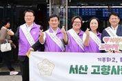 코리아타임뉴스 김택호 기자 | 서산시의회는 2일 추석 명절을 맞이하여 서산 공용터미널 일원에서 고향사랑기부제 홍보캠페인을 실시했다. 이번 캠페인은 서산시의회 의원 및 사무국 직원 30여 명이 참여한 가운데 고향을 찾은 귀성객과 시민들을 대상으로 고향사랑기부제의 취지와 참여 방법을 홍보하기 위해 마련됐다. 의원들은 서산 공용터미널에서 전통시장까지 ‘서산 고향사랑기부제에 동참합시다’라는 메시지를 담긴 어깨띠를 착용하고, 홍보 전단을 배포하는 등 가두캠페인을 전개했다. 조동식 의장은 “고향사랑기부제는 고향에 대한 애정을 표현하는 소중한 기회”라며, “많은 분들이 참여해 주셔서 우리 지역 발전에 힘을 보태주시길 바란다”고 말했다.